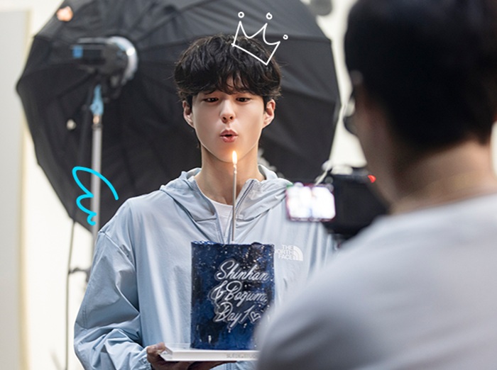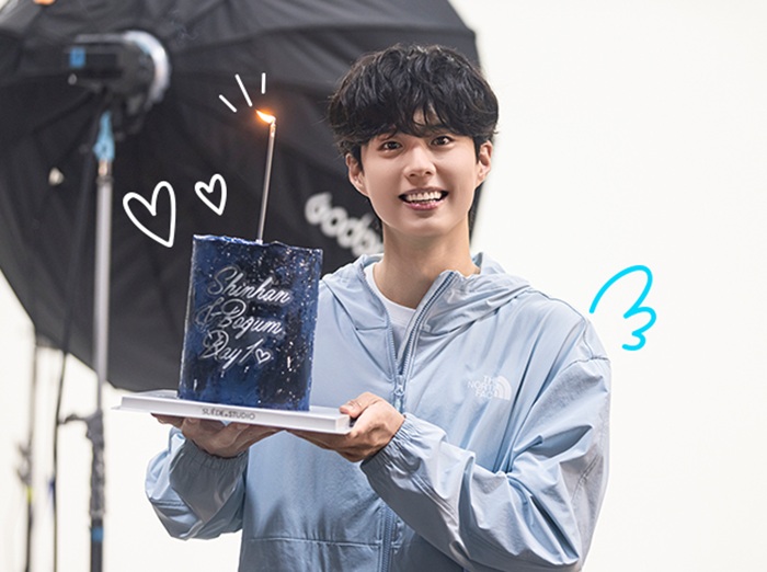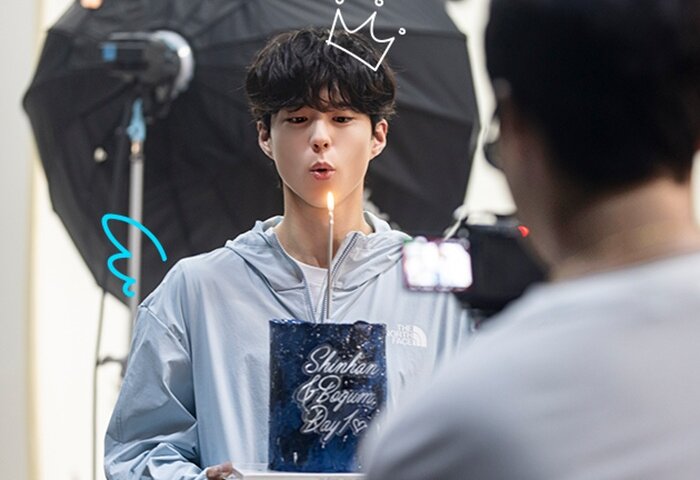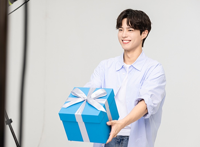 本格的な撮影に先立ち、新韓金融グループは歓迎の意味でケーキをプレゼントしましたが、パク·ボゴムは「Shinhan&Bogum Day1」と書かれたケーキを受け取り、明るく笑って気持ちの良い縁の始まりを告げました。