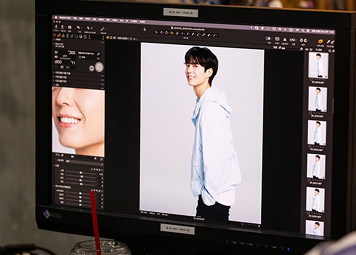 一番最初に空色のウインドブレーカーを着てカメラの前に立ったパク·ボゴムは、自然な表情と多彩なポーズを披露し、ベテラン俳優としての面貌をきちんと見せてくれました。 作家のディレクションを完璧に遂行してスタジオにはしきりに「OK!」「いいね~」という声が響き渡りました
