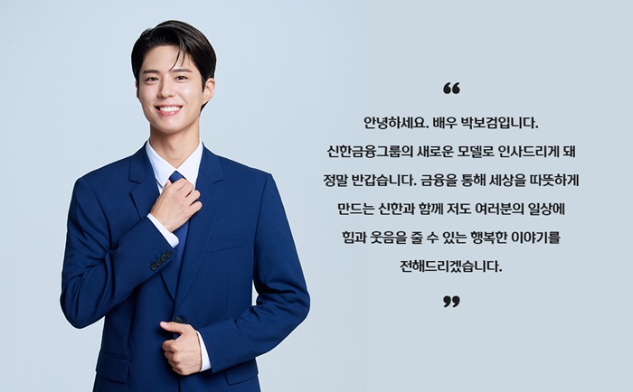 新韓金融グループは今後2年間、パク·ボゴムと共にグループ会社の商品とサービスを知らせることはもちろん、新韓の肯定的なブランドイメージを構築していく計画です。
