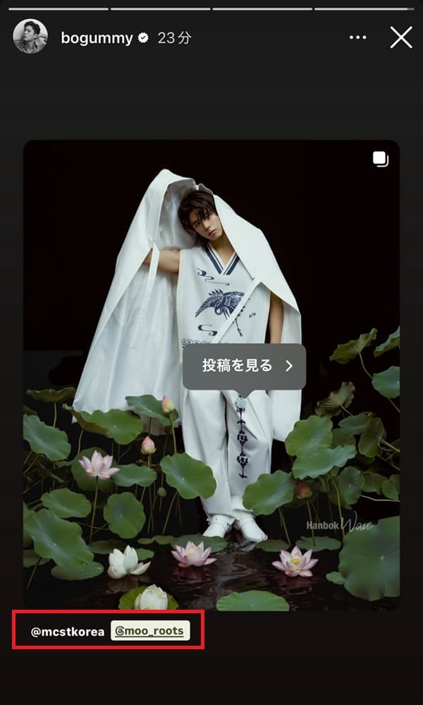 ※文体部:正式名称は「文化体育観光部」。大韓民国の国家行政機関。日本の、文化庁、観光庁、スポーツ庁に当たる。2020年から始まった、韓服の美しさを世界に広める事業「韓服ウエーブ」を主幹。ボゴミが、今年の「韓服ウエーブのイメージモデル」に選ばれています♡
