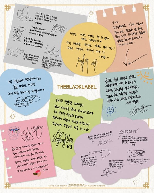 [🎁] THEBLACKLABEL 2025 추석 메시지 🌕#TAEYANG #JEONSOMI #Vince#MEOVV #ALLDAYPROJECT#PARKBOGUM #LEEJONGWON#LeejungLee #THEBLACKLABEL pic.twitter.com/Cqw77LceBc