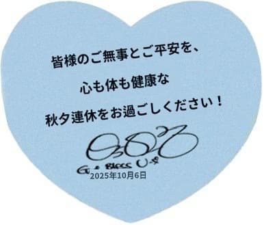 ①ボゴミの事務所から、秋夕のご挨拶(ボゴミの手書きのサインメッセージあり)