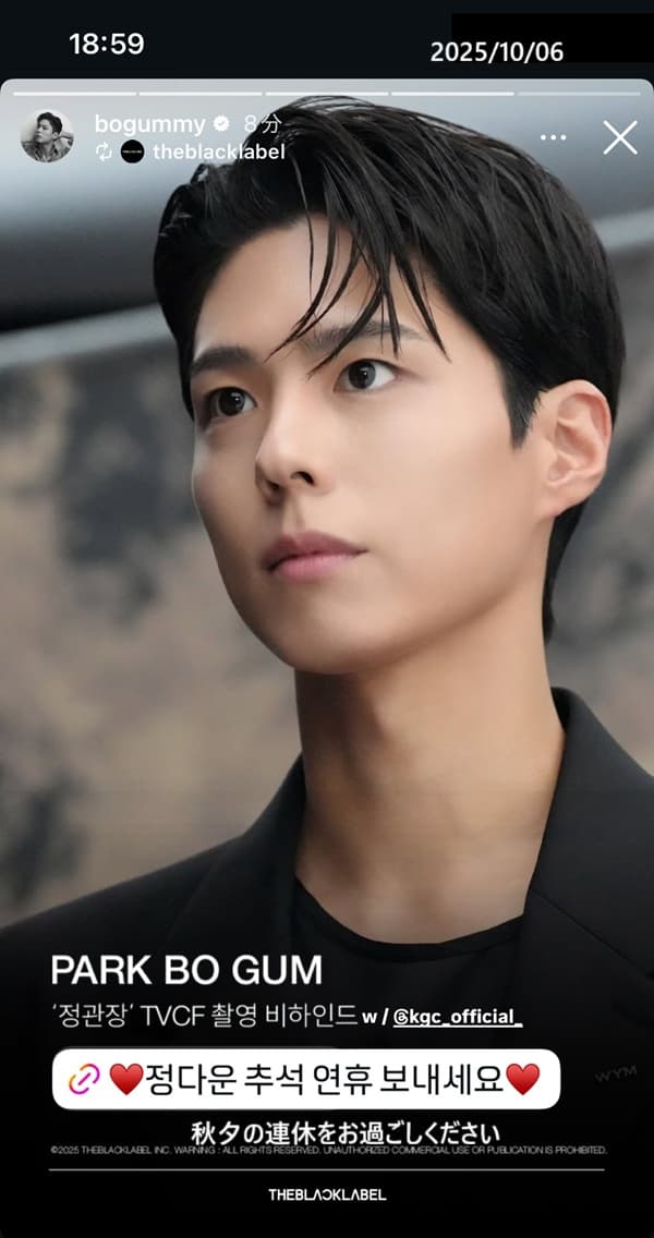 秋夕連休以降、撮影ビハインドシーンとユーチューブコンテンツも公開されます!@bogummy @kcdf_insta #PARKBOGUM #박보검