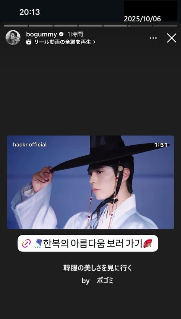 ※文体部:正式名称は「文化体育観光部」。大韓民国の国家行政機関。日本の、文化庁、観光庁、スポーツ庁に当たる。2020年から始まった、韓服の美しさを世界に広める事業「韓服ウエーブ」を主幹。ボゴミが、今年の「韓服ウエーブのイメージモデル」に選ばれています♡