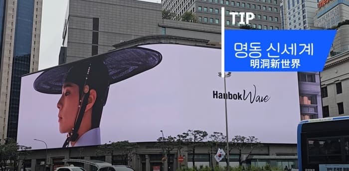 大きな電光掲示板で見る#韓服ウェーブ本当に圧倒的です!