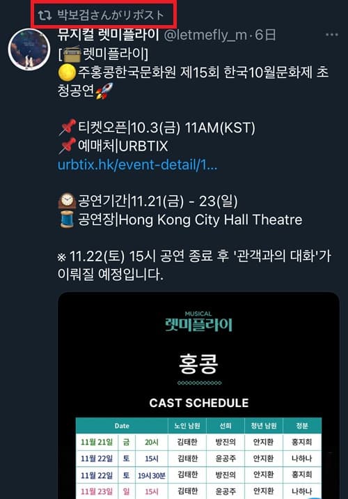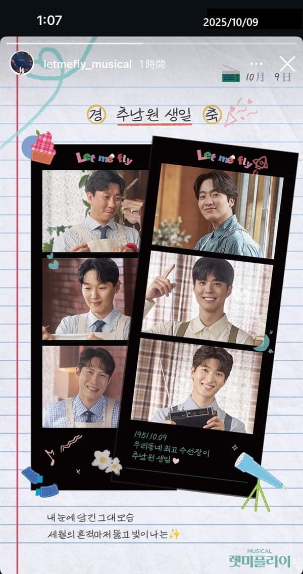 「レットミーフライ」は、ボゴミが2023年9月~12月(地方公演を加えると、~2024年1月まで)に出演した初のミュージカル出演作です。もともと「ミュージカルにも挑戦してみたかった」と入隊前のインタビューで語ったことがあるボゴミが、除隊後すぐ、大学時代の友人シンジェボム君が出ていた「2022年のレットミーフライ公演」を見て感動。