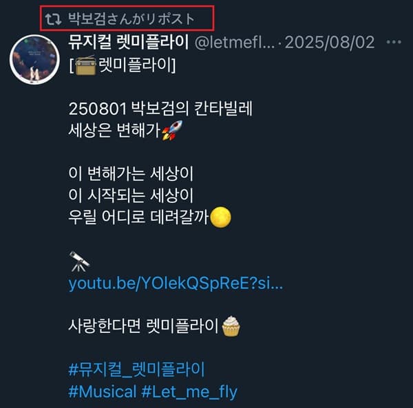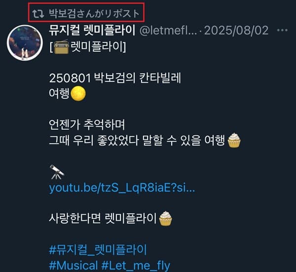 まず1本目は、8月2日に レットミーフライ公式SNSの投稿をリポスト♡