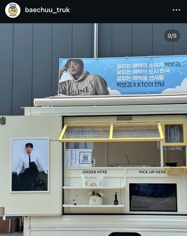 レディエンタテインメント(広告代理店)から、韓国観光公社の名誉広報大使であるパク·ボゴム俳優と撮影現場のスタッフの皆さんを応援するために、白菜喫茶店(ワゴン会社の名前:ベチュ喫茶店)を訪ねてくださいました 😝