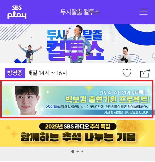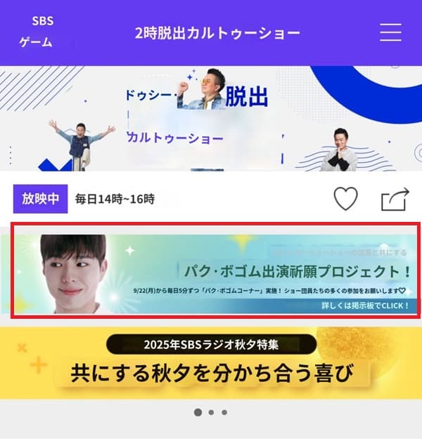 ↑SBSカルトゥショーのウエブサイトのトップページにバナーあり。