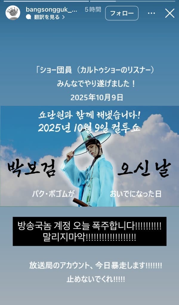 続報⑤ SBSカルトゥショーの公式SNSが「ボゴミ祭り」
