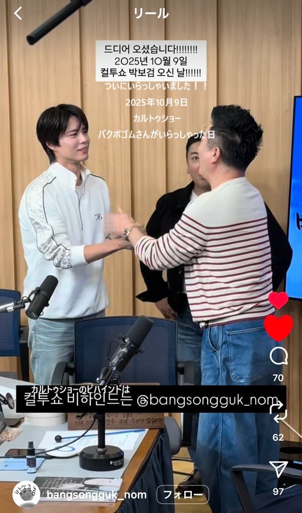 つまり「パク・ボゴムが 컬투쇼(カルトゥショー)に来たことが、