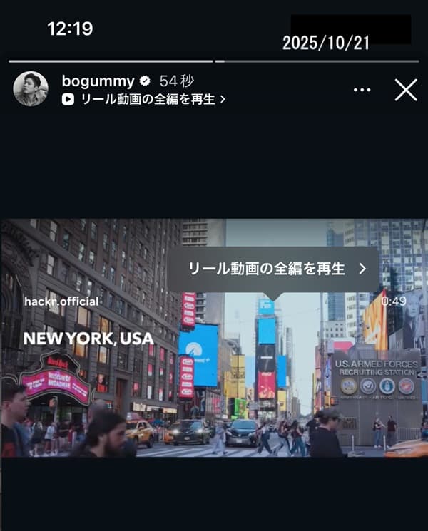 ※インスタでも同じ映像の同時更新あり。