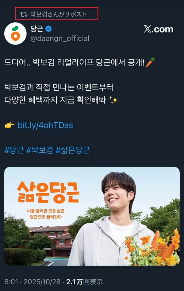 今日1本目の記事で 紹介した「ダングン」の公式投稿のリポストがありました♪