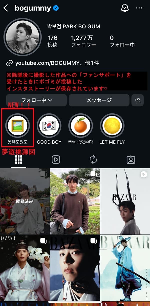 ボゴミが公式インスタに「夢遊桃源図」サポートを創設しました♪