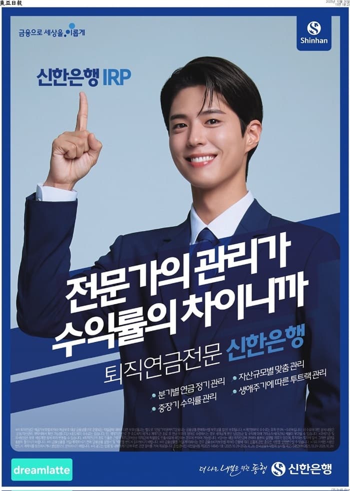 新韓銀行 IRP 新しい全面広告があります。本当にパク新韓広告は打席に立つ者がほかにいませんね。新しい広告なので PDF版も追加します!良い秋の日、仕事もしながら幸せな思い出で満たされますように!!