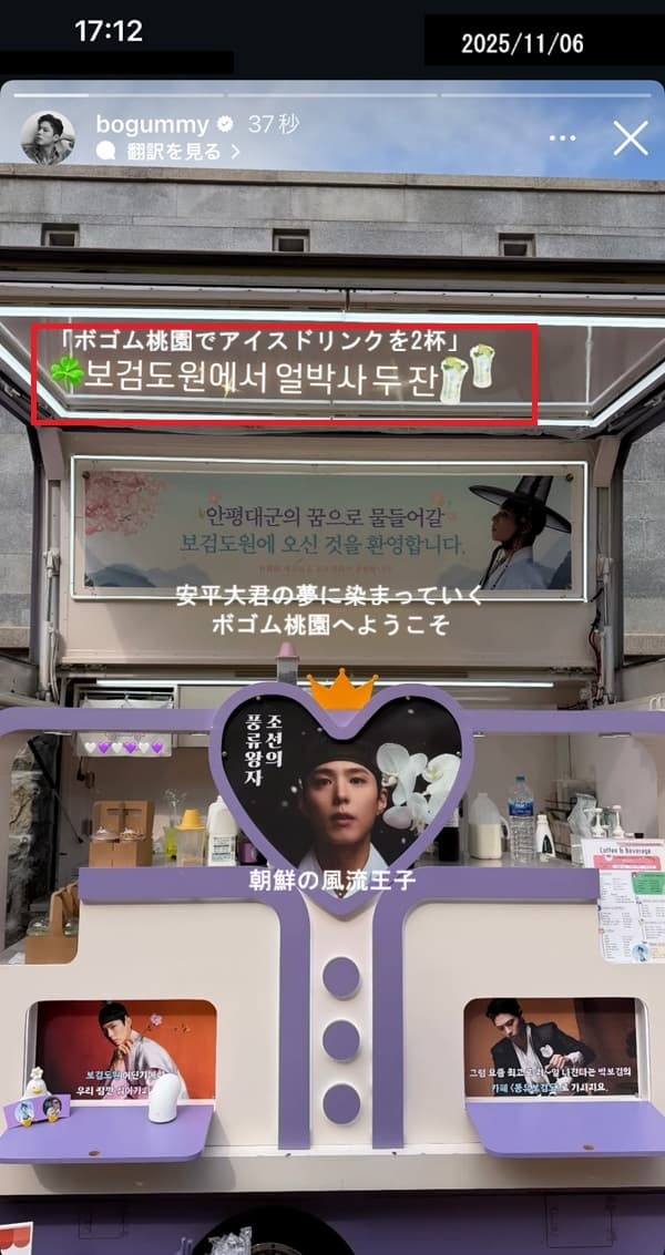 パクボゴム公式インスタスト-リー更新!「現場サポートに感謝」