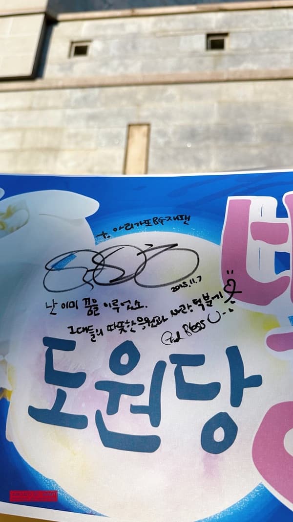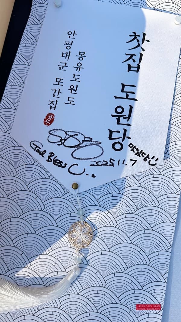 「安平大君といつも安らかな撮影になりますように(垂れ幕の言葉和訳)」