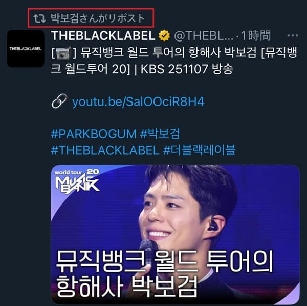 [ビデオ] ミュージックバンク ワールドツアーの航海士 パク·ボゴム [ミュージックバンク ワールドツアー20] | KBS 251107 放送
