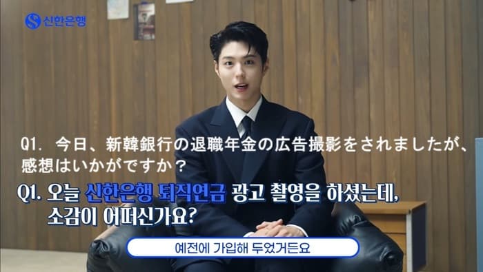 Q1. 今日、新韓銀行の退職年金の広告撮影をされましたが、感想はいかがですか?