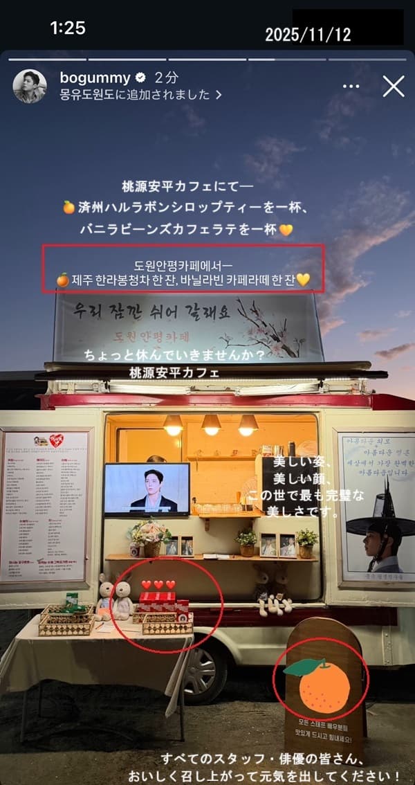 「ビュッフェを出そうとしてたけど、コーヒーカーだけの応援限定になったと、パクボゴムギャラリーさんに投稿がでてたんですよ。なので、スタジオ撮影は少なそう…。時代劇の屋外ロケ場や、史跡での撮影が多そうですww)