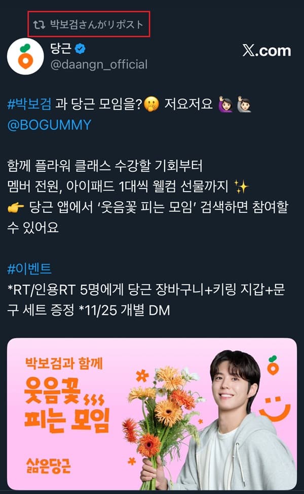 私です私です!🙋🏻♀️🙋🏻 @BOGUMMY※모임(モイム) は、 「集まり」「会」「サークル」「コミュニティ」のこと。ダングンのアプリの中に「モイム」機能があって、今回、ボゴミが参加するお花教室は、この「モイム」で応募する仕組みです※
