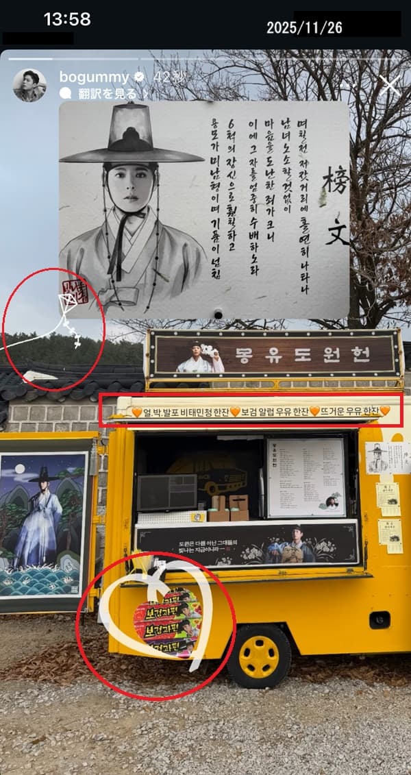 パクボゴムの「今日の夢遊桃源図の撮影現場」にファンサポート!