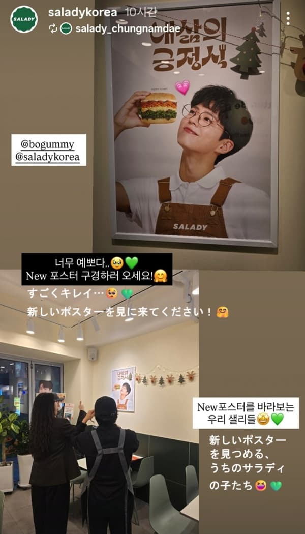 新しいポスターを見つめる、うちのサラディの子たち😆💚忠南大店だって www