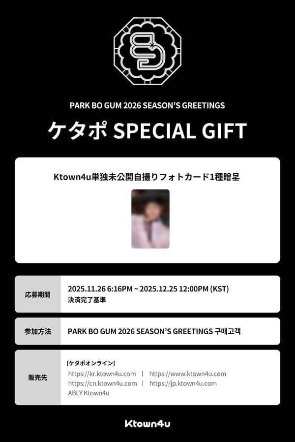 プレオーダー(予約注文)開始!プレオーダー|2025. 11. 26. 午後6:16 – 2025. 12. 25. 午後11:59 (韓国時間)