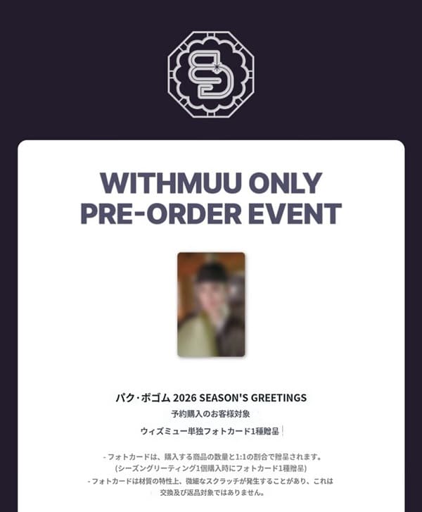 【詳細発表】パクボゴム、2026シーズンスグリーティング