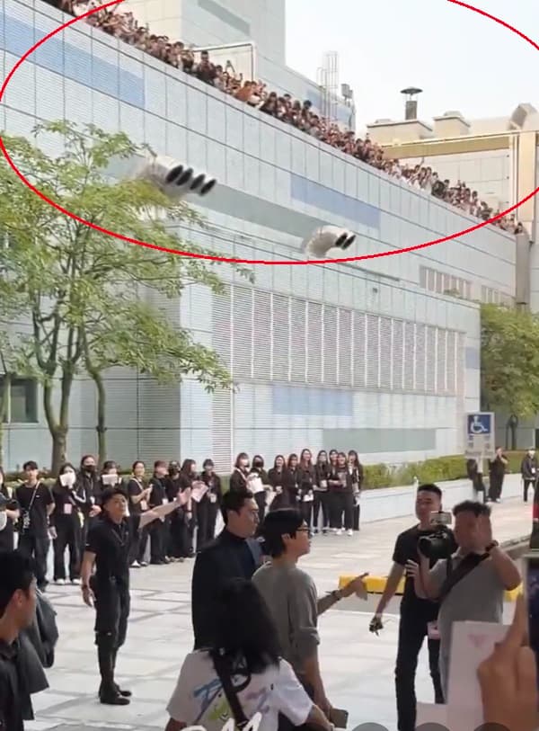 そして高雄空港の出口で、車に乗り込む前に。屋上にいる たくさんのファンにも…