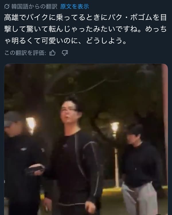 가오슝에서 오토바이 타고가다 박보검 목격하고 놀래서 넘어지셨나봐 하 넘 해맑으셔서 귀여운데 어케 https://t.co/DVaLVPG9a5 pic.twitter.com/mGO6PlDIie