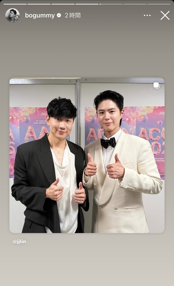 JJLINさんの公式インスタに「ボゴミ2ショット」登場!