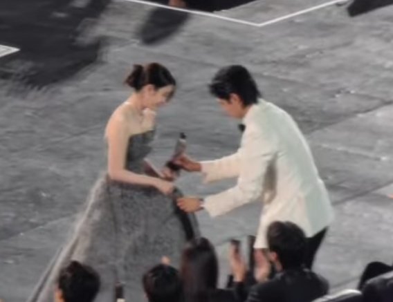 この動画で、IUがスピーチを終えて席に戻ろうとしたとき、