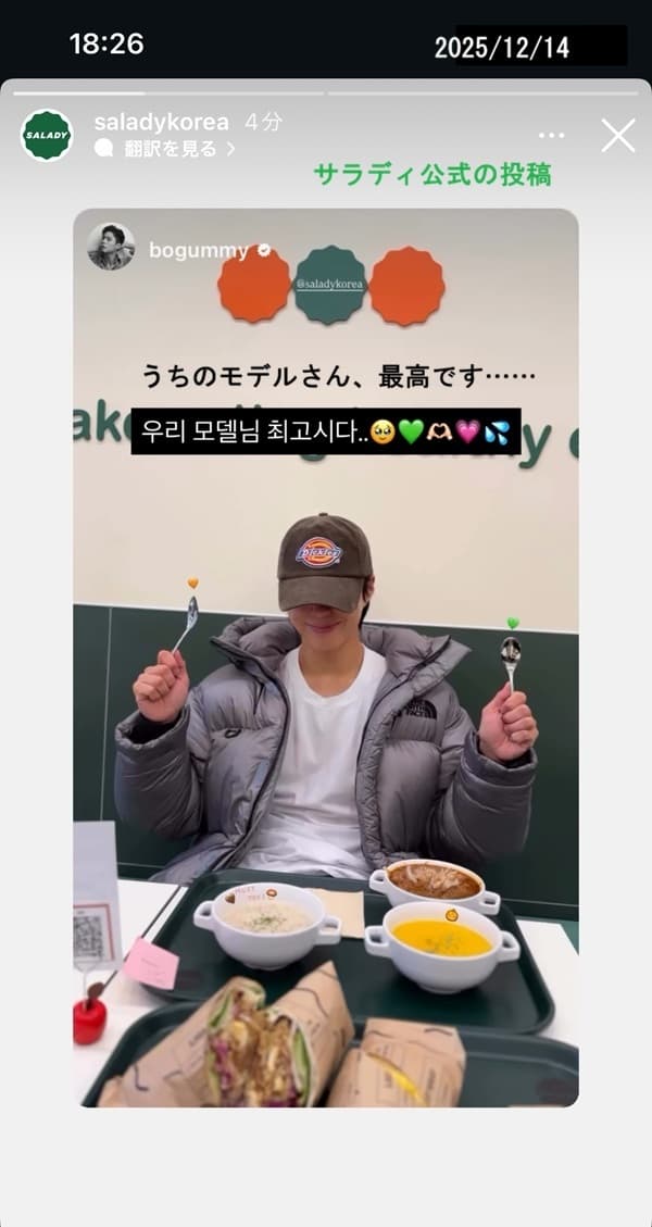 ㅇㅇ(211.234)「サラディの店舗に行って食べたんだ?パク・サラディ、超イケメン激カワㅋㅋ」18:28