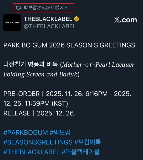 発売日|2025年12月26日#PARKBOGUM #パクボゴム #SEASONSGREETINGS #ボゴム離陸