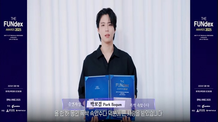 パクボゴム「2025 FUNdexアワード」主演男優賞「受賞挨拶」ビデオ