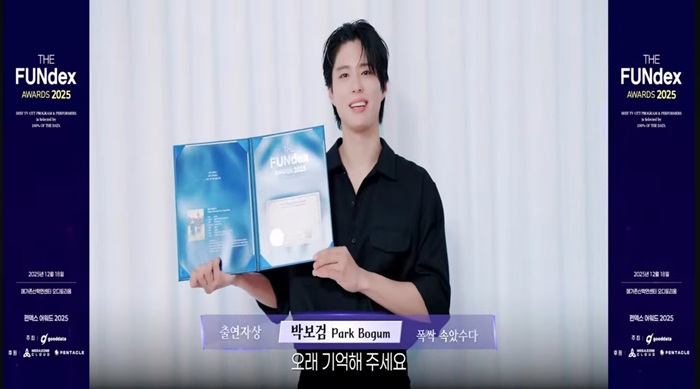 パク・ボゴム、「2025 FUNdexアワード」出演者大賞…『おつかれさま』5冠王(総合)2025.12.18 午後5:40