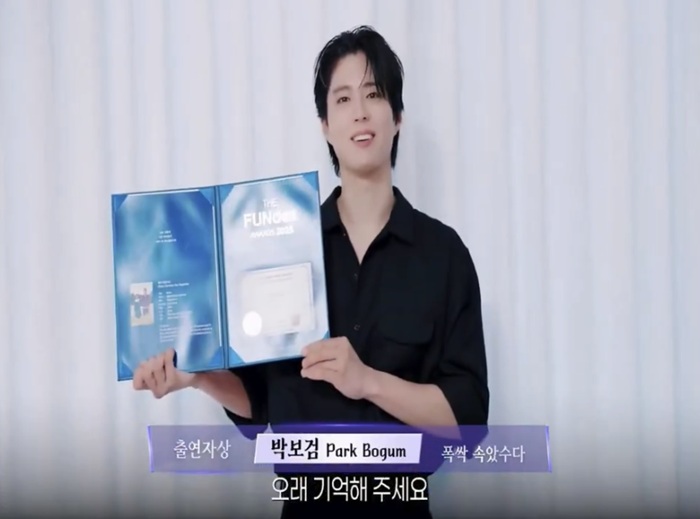 「FUNdexアワード出演者大賞、パク・ボゴム受賞!おめでとう」