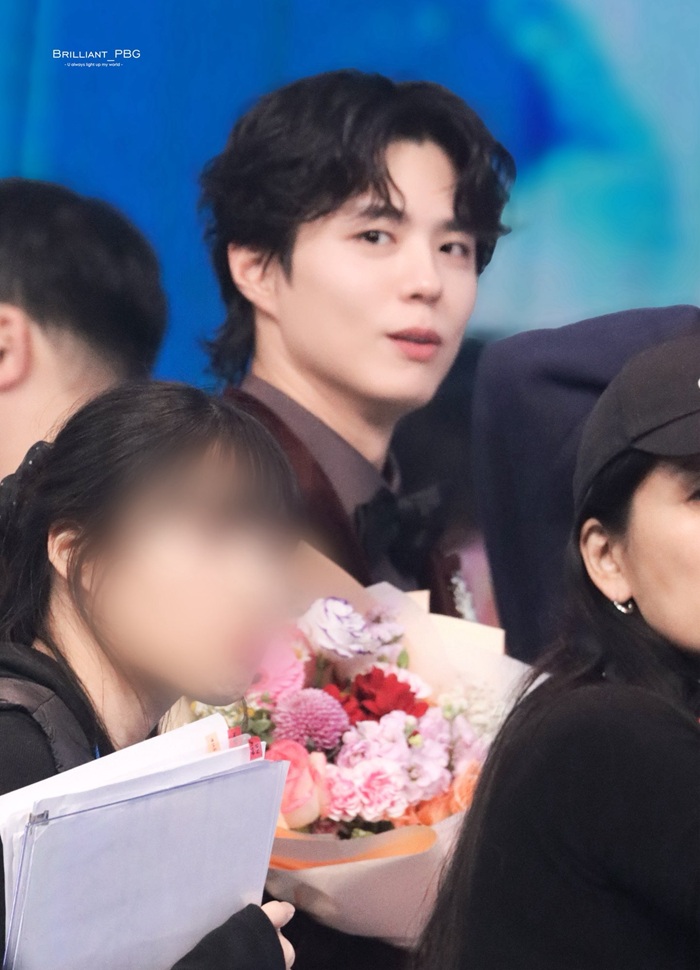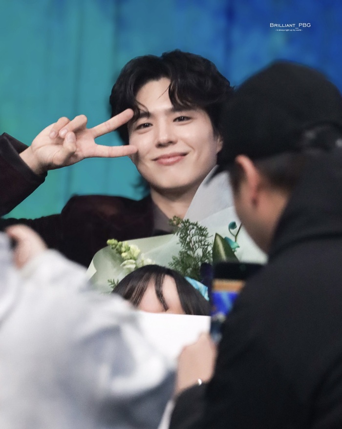パク・ボゴムは花束とトロフィーを振りながら、ゆったりと踊ってコメントを締めくくり、また一つの名場面を完成させた。
