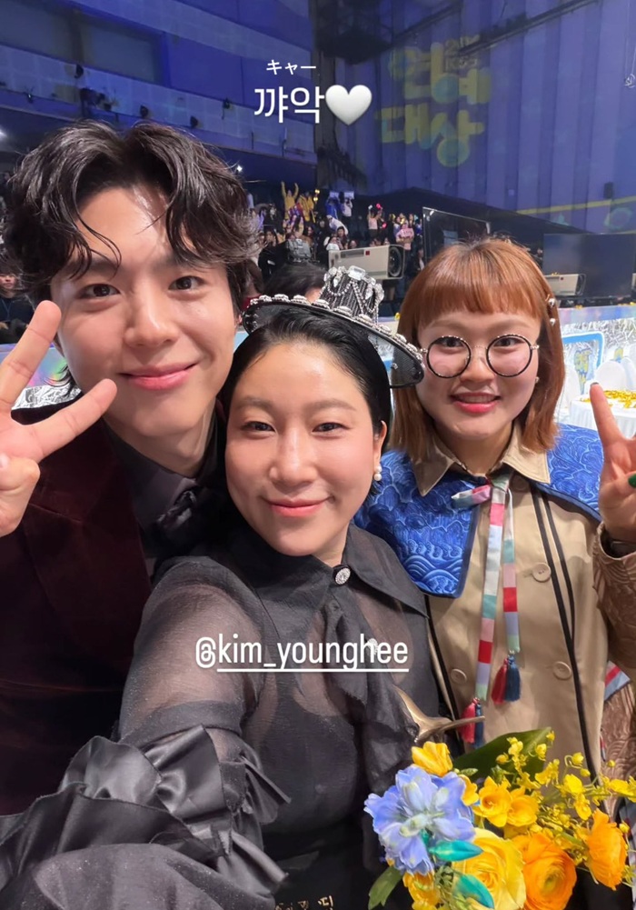 ボゴミと同じく「今年の芸能人賞」を受賞した キムヨンヒさん(中央)と💙
