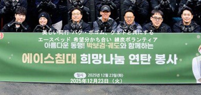 その影響でエースベッドも会社ぐるみで、参加するようになった経緯あり。詳細は過去投稿で>>2024.01.5 投稿 パクボゴム、自主的にエースベッドの練炭ボランティアに参加!エースベッドが1億ウォン規模の練炭12万個を寄付