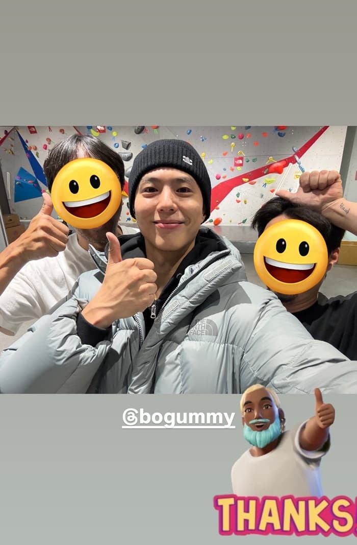キムインギョンさんインスタ投稿「ノースフェイスの撮影中にボゴムさん」