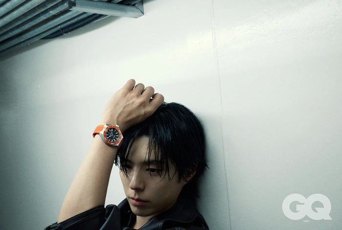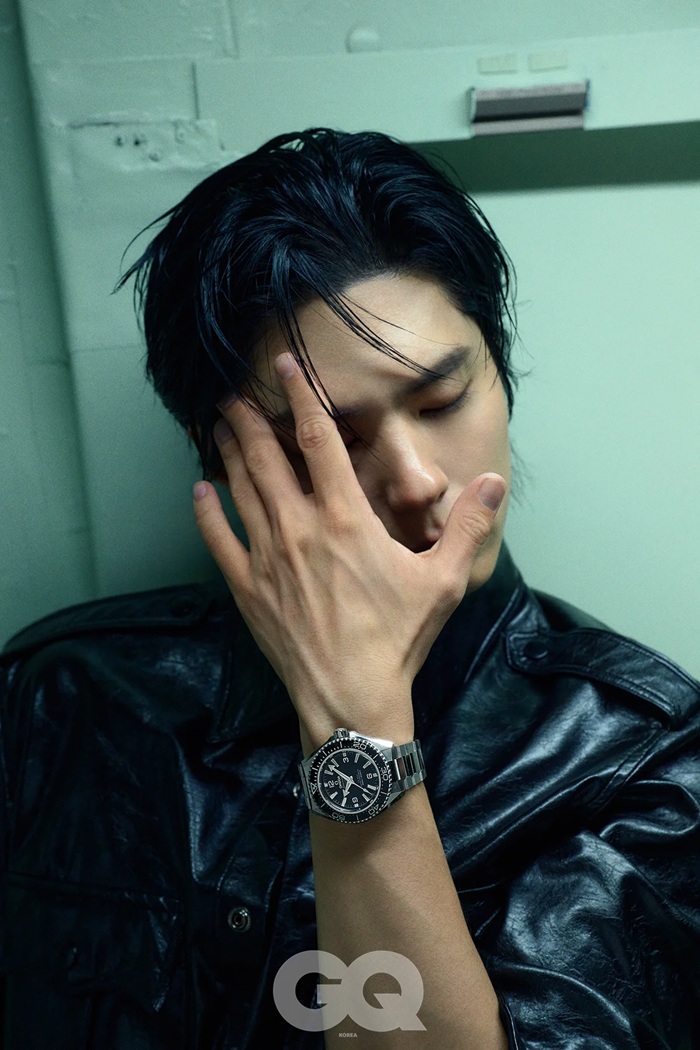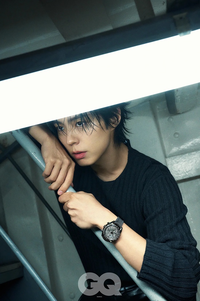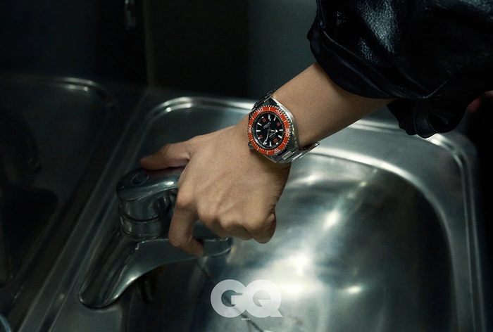 BG あの日の僕を覚えていてくださって、ありがとうございます。オメガとともにしたヒョンビン先輩のグラビアを見ながら、撮影の予習をしました。今日はシーマスター プラネットオーシャンを着けているのですが、この時計をデザインした方が追求しているものを、うまく表現したいと思いました。ブランドについても一生懸命勉強しました。