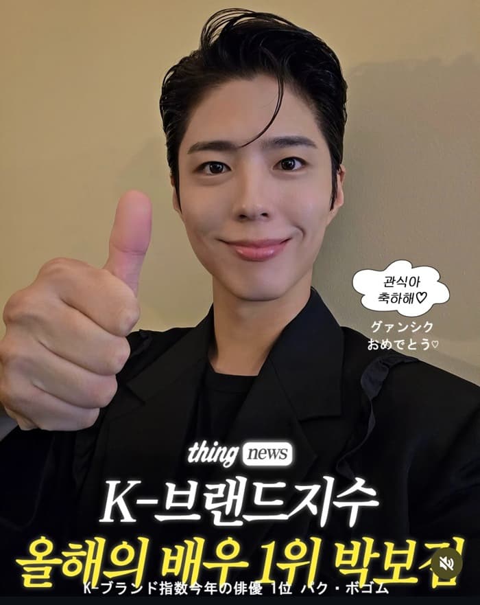 「Kブランド指数」2025年・今年の俳優部門で、パク・ボゴムが1位を獲得した。