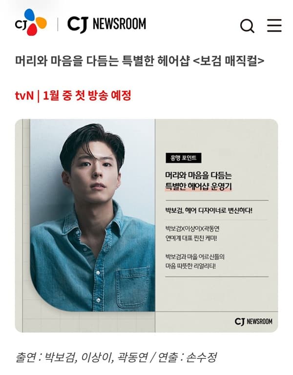 韓国で1/30初放送!パクボゴムが本物の理容師になる「ボゴムマジカル」、第1弾予告VTR公開!