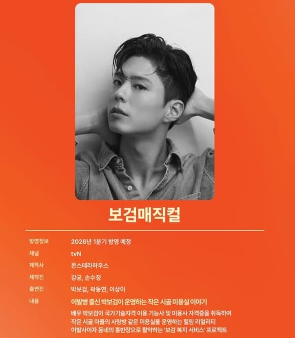 ヘア担当パク・ボゴムの新たな挑戦は、1月30日(金)夜8時40分に初放送されるtvN『ボゴム・マジックル』で確認できる。