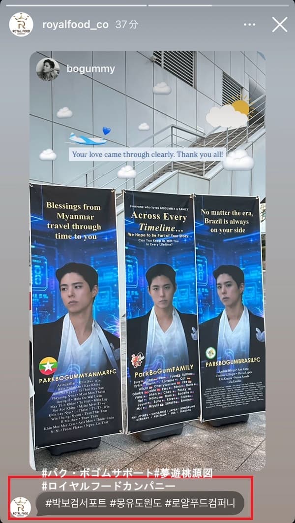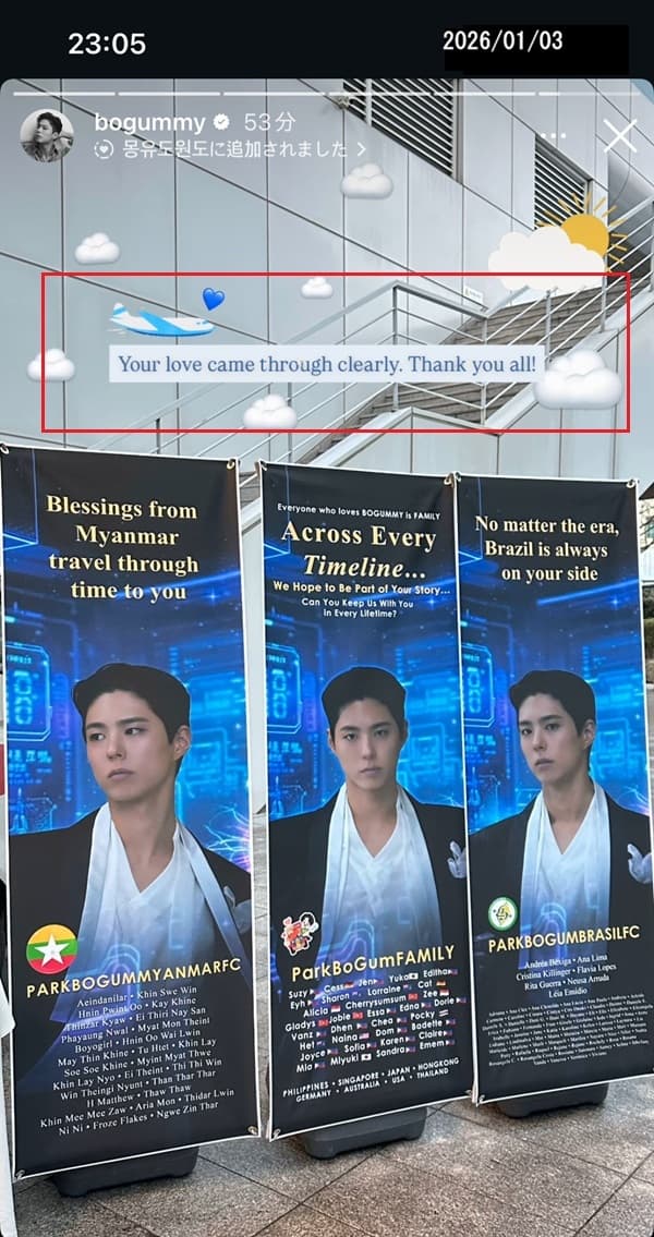 ボゴミの昨晩のインスタストーリー(撮影現場の応援に感謝)