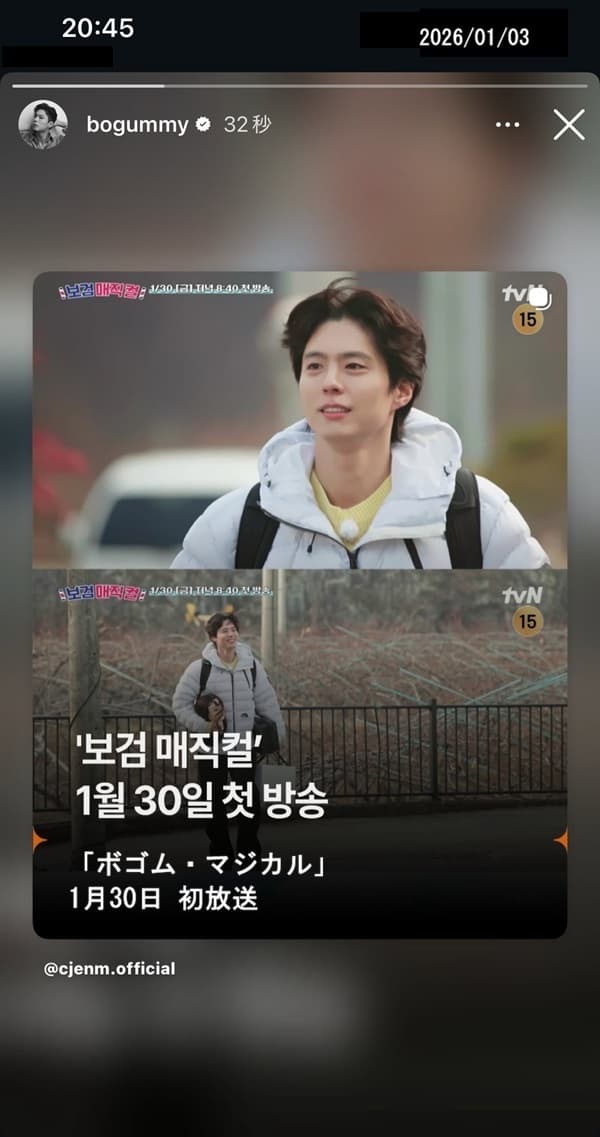 ボゴミの昨晩のインスタストーリー(撮影現場の応援に感謝)