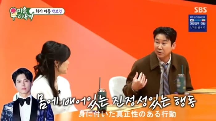 これに対し、パク・ボゴムと長い間、「百想芸術大賞」のMCとして呼吸を合わせてきたシン・ドンヨプは、「年に一度会うだけでも、プレゼントをくれて、気遣ってくれる」とし、「無理にやろうとするとすぐに分かるが、そうではなく本物だ。体に染みついているようだ」と、パク・ボゴムの誠実な行動を称賛した。