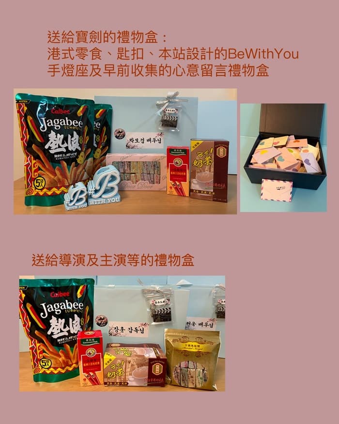 および事前に集めた心のこもったメッセージカード入りギフトボックス👉下: 監督および主演俳優などへ贈るギフトボックス